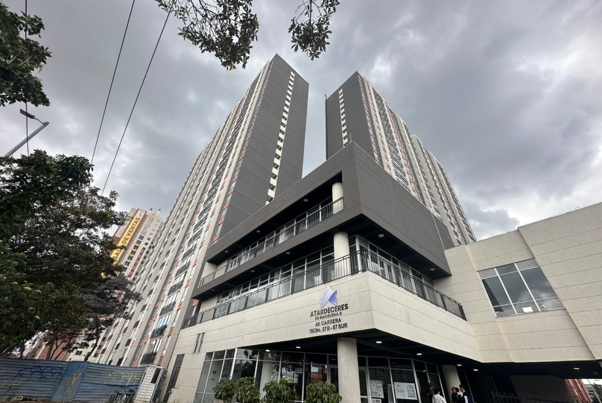 Arriendo hermoso apartamento en el Conjunto Residencial Madelena II, estratégicamente ubicado cerca de la Autopista Sur con Carrera 70C; es un espacio acogedor, con excelente iluminación natural, situado en séptimo piso con ascensor, que cuenta con hall de entrada, amplia sala comedor con ventanal de piso a techo, cocina semi integral abierta con gabinetes superiores e inferiores, estufa a gas natural, extractor y mesón tipo americano, zona de lavandería independiente con instalaciones para lavadora y calentador a gas, baño social con división en vidrio, dos alcobas con clóset (una amplia y otra auxiliar), el apartamento no dispone de garaje pero el conjunto ofrece parqueaderos comunales, además de zonas verdes, salón comunal, canchas deportivas y zona BBQ, ideales para disfrutar en familia.